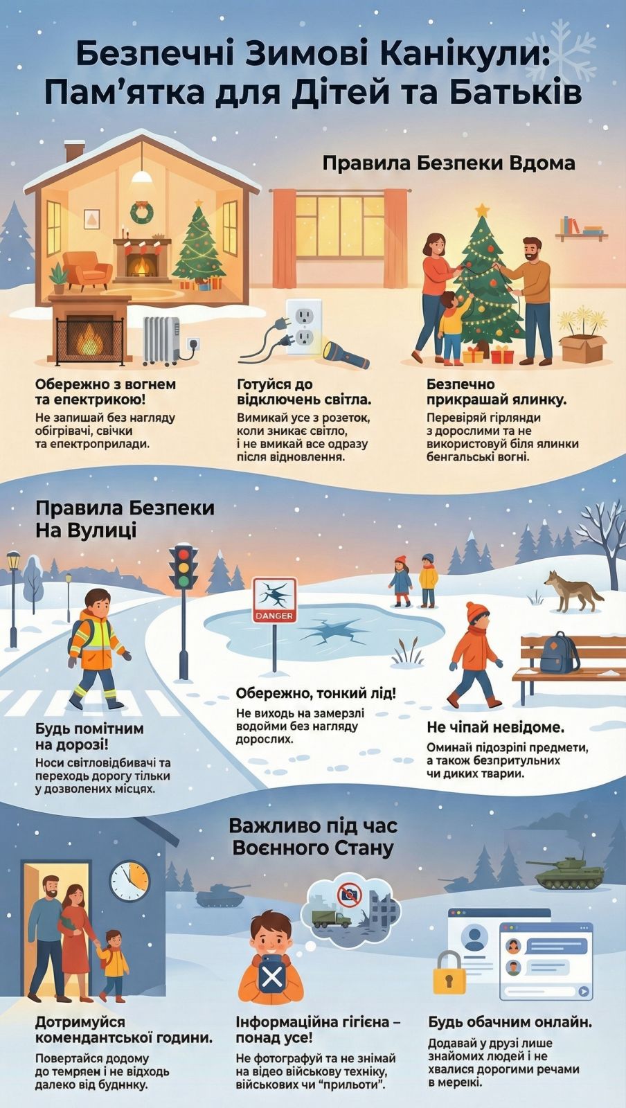 Безпечні зимові канікули: пам’ятка для дітей та батьків