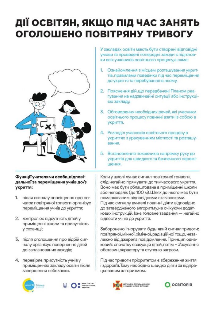 Дії освітян, якщо під час занять оголошено повітряну тривогу 12 Вересня, 2025 Відкрити документ у новому вікні ТУТ