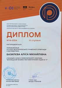 За підсумками олімпіади двоє учнів ВФМЛ №17 вибороли дипломи ІІІ ступеня, а Ходасевичу Івану не вистачило 1 бала для того, щоб стати переможцем.
