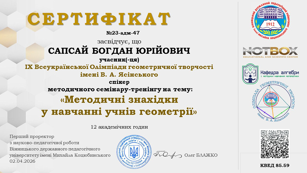25 березня 2026 року на платформі Zoom відбувся семінар-тренінг на тему “Методичні знахідки в навчанні учнів геометрії”.