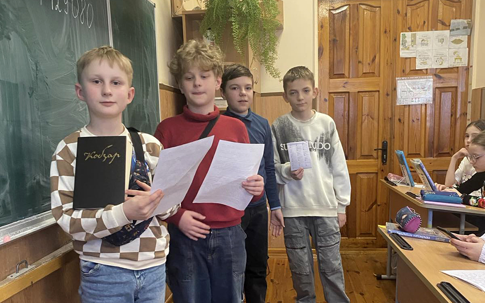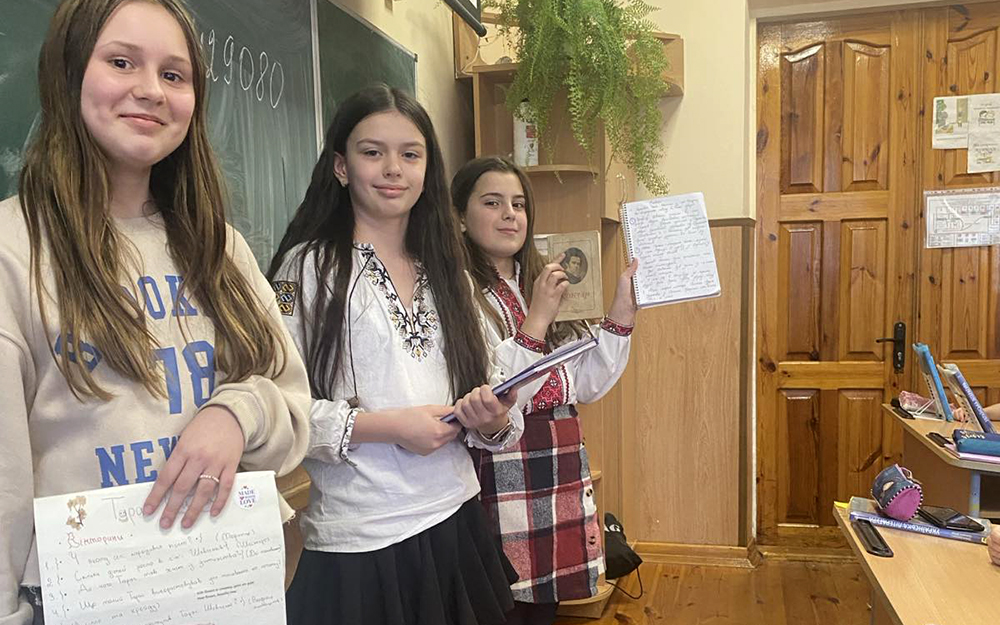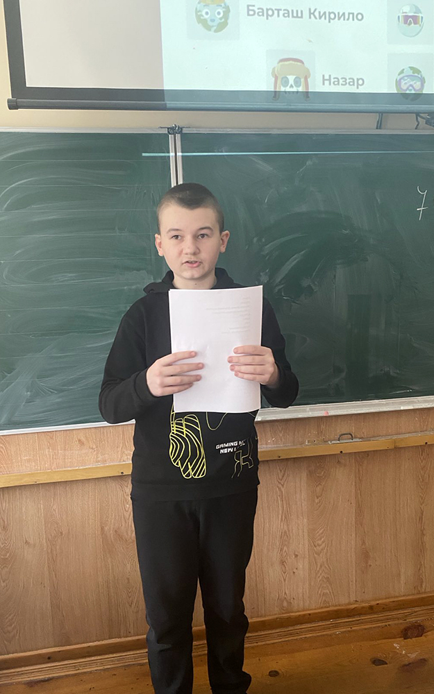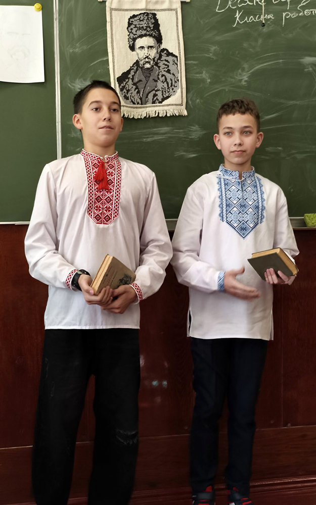 3. Учні 7-Б та 7-Г класів підготували інсценізації творів Шевченка “Відьма” та “Назар Стодоля” (Козак Іван та Сакевич Марія (7-Б клас), Горейко Варвара та Кирилюк Ілона (7-Г клас), вчитель Дячук О.В.)