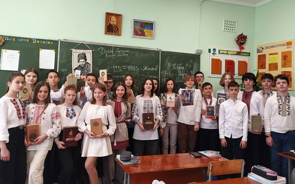 4. Учні 6-В класу взяли участь у конкурсі різних видань “Кобзаря” та читали напам’ять вірші поета (вчитель Ковальчук Л. Е.).