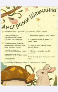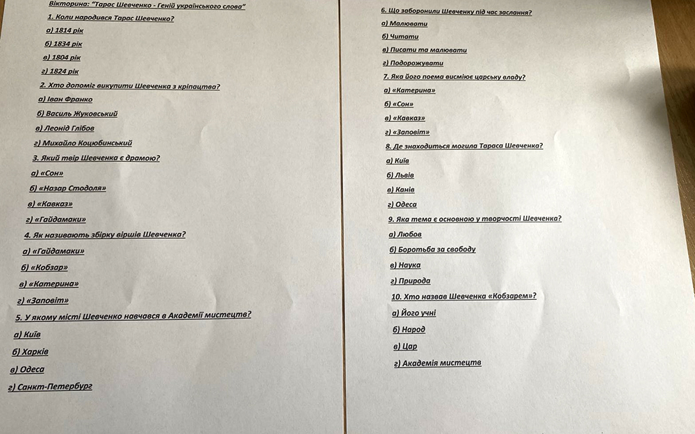 - фотоквест до Дня народження Кобзаря (10 ілюстрацій-запитань про життя та творчість Т. Шевченка).
