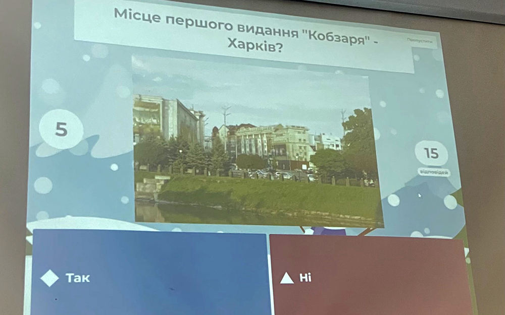 2. Для ліцеїстів 7-В класу була проведена літературна гра “Шевченко- мандрівник”, вікторини та гра “Кахут” про Т.Г. Шевченка (учитель Коломієць Т.А.).