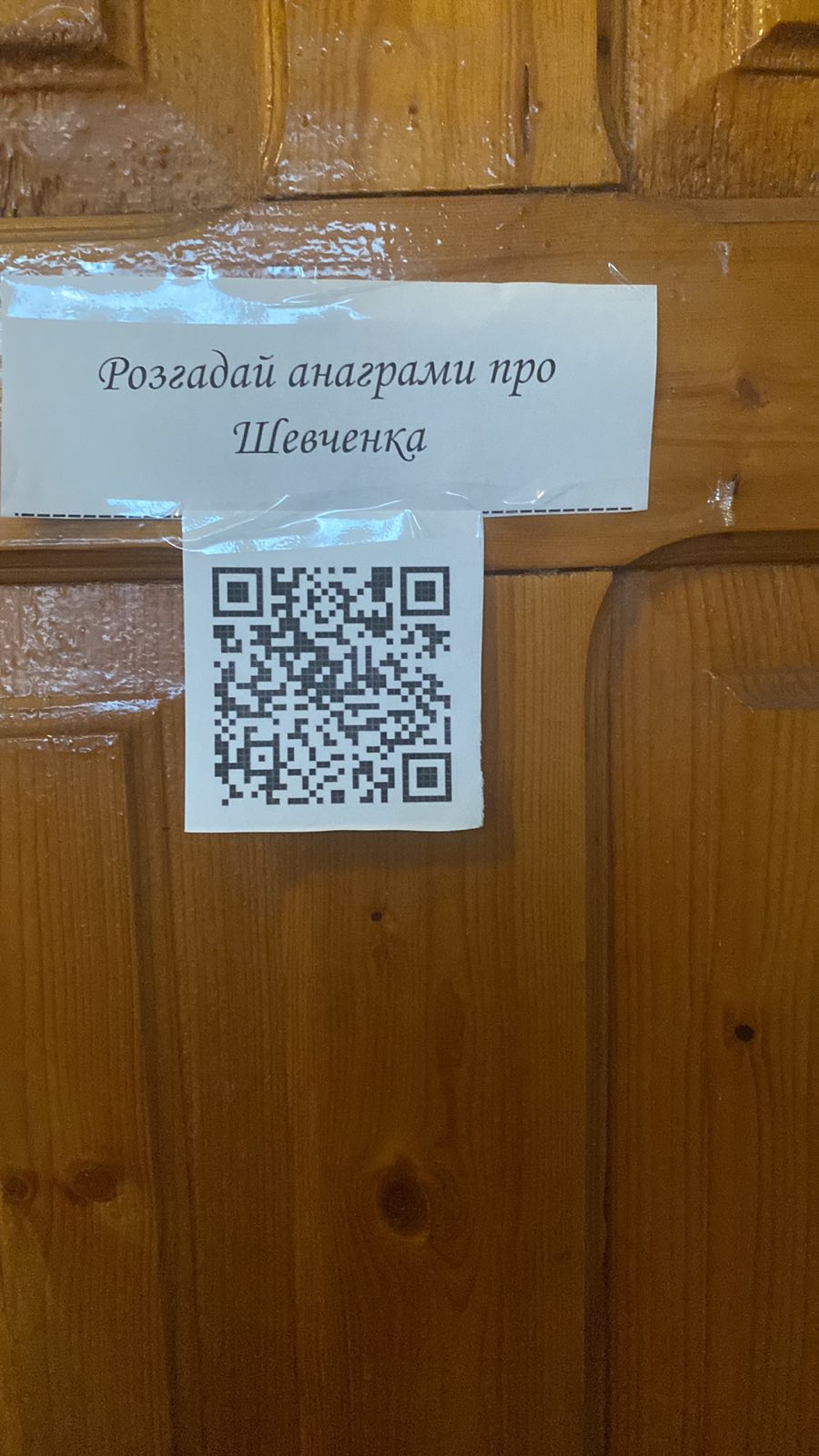 1. Учениця 10-А класу Марченко Дарина підготувала тест з використанням QR кодів “Який ти Шевченко?” (учитель Коломієць Т.А.). Оголошення були розміщені на дверях кабінетів ліцею.