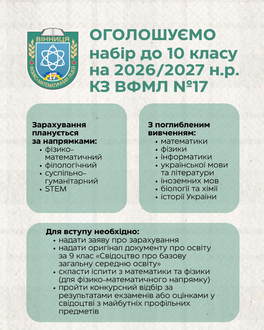 Статут КЗ «Вінницький фізико-математичний ліцей №17»