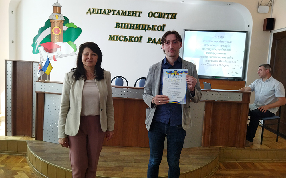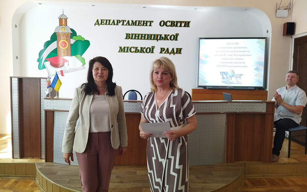3 червня 2025 року в актовій залі Центру професійного розвитку педагогічних працівників Вінницької міської ради відбулося нагородження педагогів грамотами Департаменту освіти ВМР за професіоналізм, вагомий внесок у розвиток освіти міста та перемогу у фахових конкурсах.