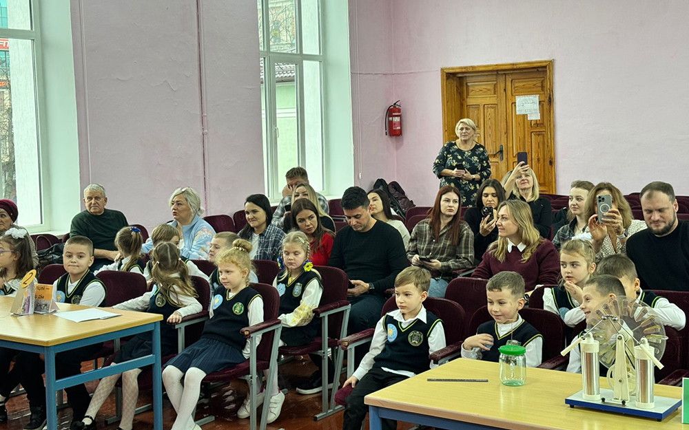 Першокласники вправно та з ентузіазмом виконували всі завдання, а їхню спритність, допитливість і розум відзначили герої нашого свята науки – Математика, Інформатика та Фізика.