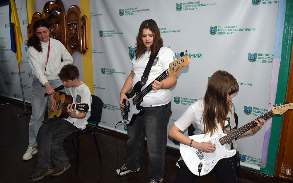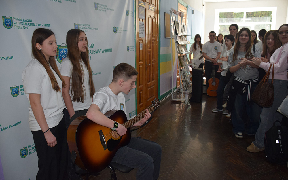 Звучали твори “Думи мої, думи мої”, “Борітеся – поборете”, “Мені однаково”, “Садок вишневий біля хати” у виконанні юнаків та дівчат із супроводом гітар.