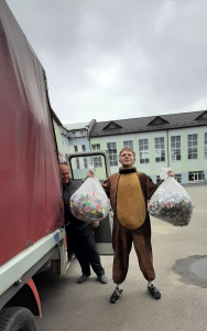 Допомагали вантажити зібрану сировину учні 11-их класів, які в цей день прийшли в школу в різноманітних костюмах, що надало процесу особливого колориту.
